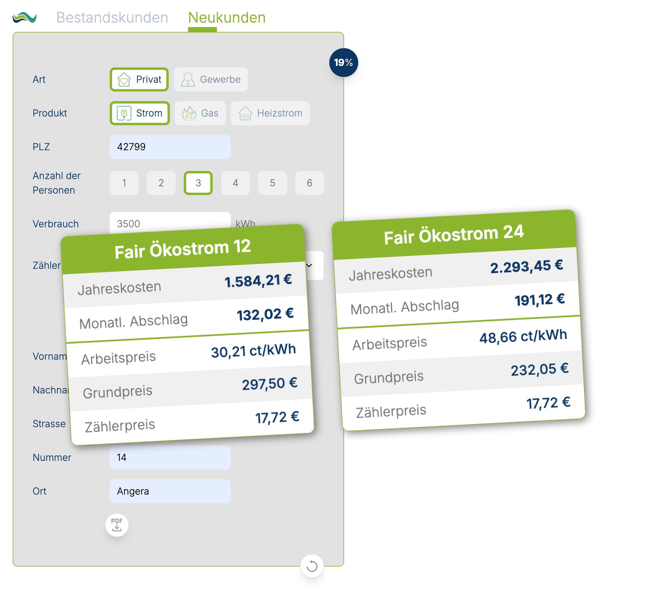 Internes Tool für die Kundenberatung: Berechnung und Vergleich von Tarifen